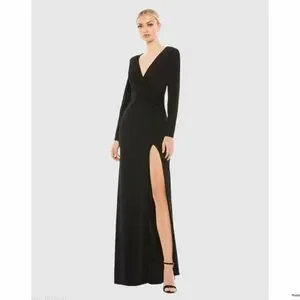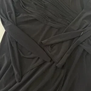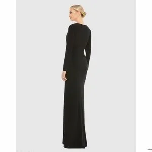 IEENA FOR MAC DUGGAL Black Jersey Asymmetrical Ruched Gown with Rhinestones Sz 8