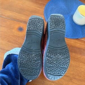 These have been worn twice and are in Amazing, Like New condition! Very Gently Preowned Dansko XP Pink Glitter Clogs in a size 39. This converts to a size 8.5-9 per the Dansko website. These are sold out completely. There is no areas of glitter missing and no flaws other than very gentle wear on the soles that is only from wearing twice. These are truly beautiful and in amazing condition! Feel free to ask any questions and will ship within 24 hrs of sale! Price very firm and significantly discounted. Box not included.