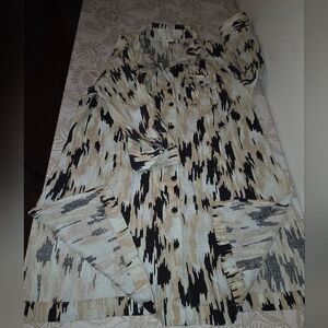 Style & Co Abstract 100% Linen Button Tunic size 10 Belt Missing Summer Vacation