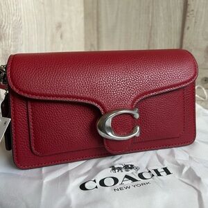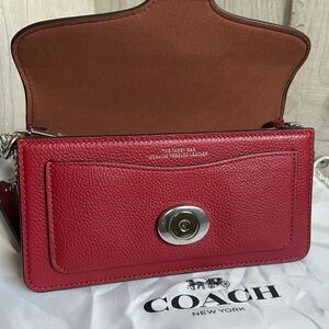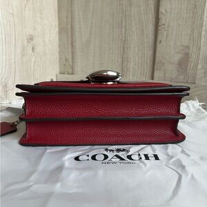 Elegant red crossbody bag with signature Coach logo. Sleek design with adjustable strap. No tags only used twice.