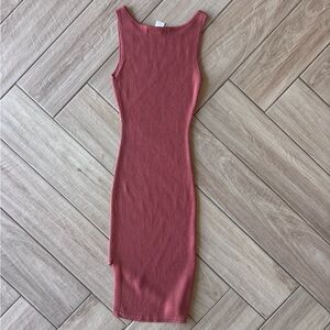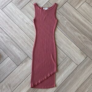 Say What? Ribbed Asymmetrical Tank Dress in Dusty Rose