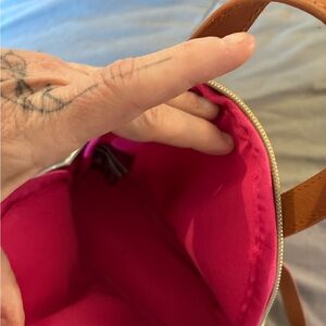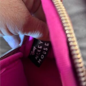 Adorable mini bag featuring Mickey Mouse and floral designs. Vibrant pink and green accents. Ideal for a playful touch.