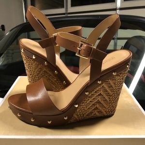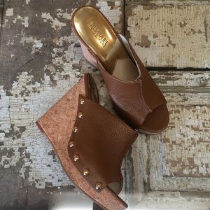 UGG Chestnut Suede Wedge Ankle Boots with Shearling Trim