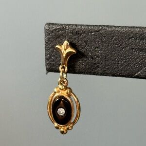 Avon Victorian Revival Mourning Onyx Gold Plated Drop Earrings Old Money