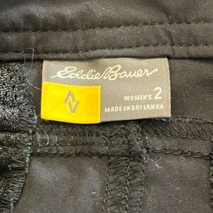 Comfortable mid-length bermuda shorts from Eddie Bauer. Stretch fabric allows easy movement. Double-button waist with belt loops. Front pockets for essentials. Clean, versatile design for casual wear.