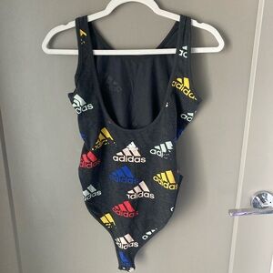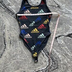 adidas Black One-Piece Swimsuit with Multicolor Logos