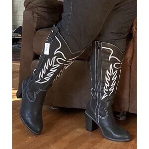 NWT TORRID Tall Shaft Heeled Western Boot Black Size 6 Wide Calf Country