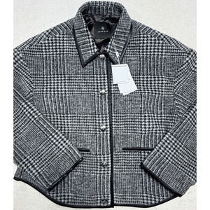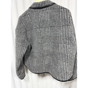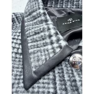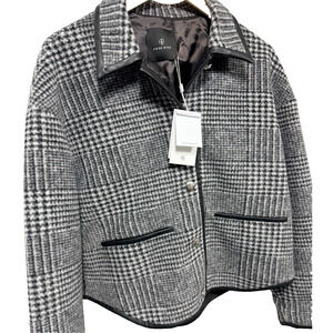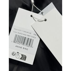 Anine Bing Camden Jacket Black and Grey Check Sz Sm Boss Faux Leather Trim NWT