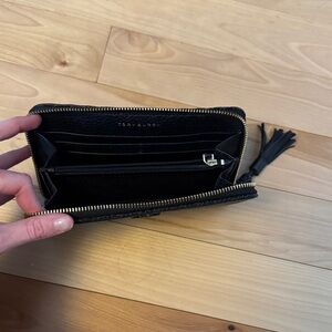 Tory Burch Black Pebbled Leather Zip Wallet with Tassel