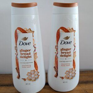 Dove produced the gingerbread delight for the holiday season of 2025. This limited edition is hard to come by anymore. Two bottles of nourishing body wash totaling 40 fluid oz included in this lot. Treat yourself to the sweet nostalgic scent of gingerbread cookies. Fresh out of the oven. Enjoy the aroma of softened butter, sweet molasses and candy ginger. As you gently cleanse and nourish your skin for the holiday glow it deserves. Make every shower feel like homemade treat, no oven needed.