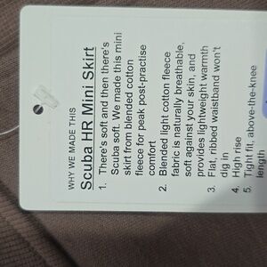 Brand new with tags, this Lululemon Scuba High-Rise Mini Skirt in Taupetastic is the ultimate blend of comfort and style. Perfect for post-practice lounging or casual outings.