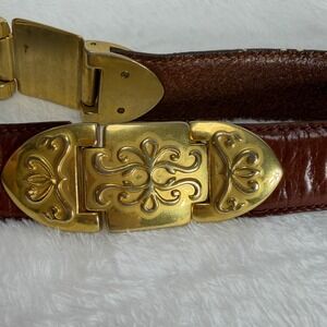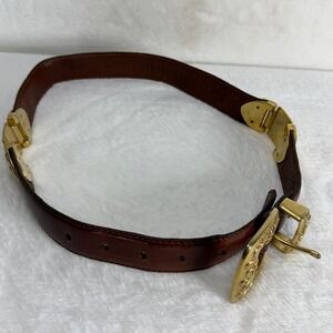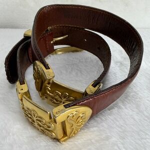 VTG Fossil Womens S Brown Leather Western Concho Belt Gold Tone Filigree Buckle