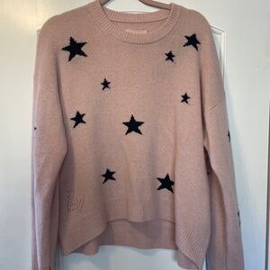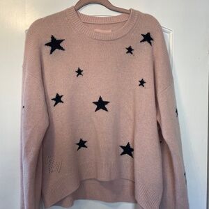 ZADIG & VOLTAIRE "MARKUS" STARS CASHMERE SWEATER IN PINK WITH BLACK STARS SIZE S!