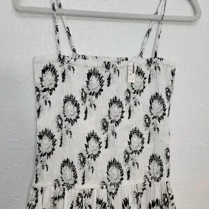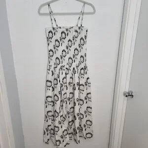 Madewell Smocked Maxi Dress NV462 Size M Graphic Sunflowers NWT