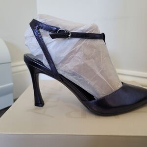 NIB Naturalizer Astrid T-Strap Pointed Toe Dress Pumps, Navy, Size 7.5W