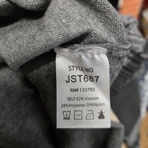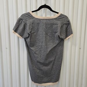 POL Gray V-Neck Short Sleeve Tee with Cream Trim