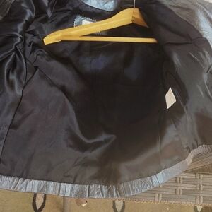 Stylish metallic leather jacket. Features a sleek, modern design. Perfect for any occasion.