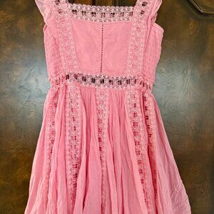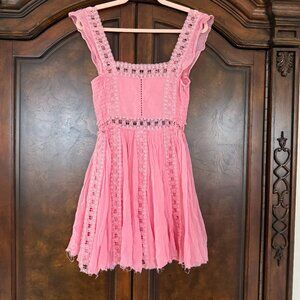 Free People Verona Lace Crochet, Cotton Mini Dress - Pink - Size Small