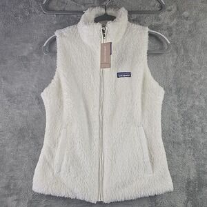 Patagonia Vest Women Small Birch White Los Gatos Sherpa Fleece Full Zip Logo NWT