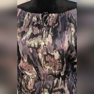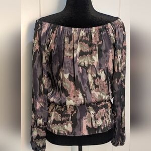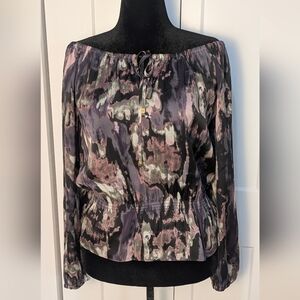 MICHAEL KORS Chic Women's Off The Shoulder Peplum Top Abstract Watercolor Sz S