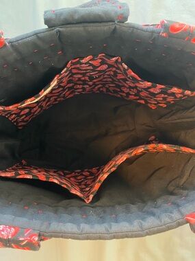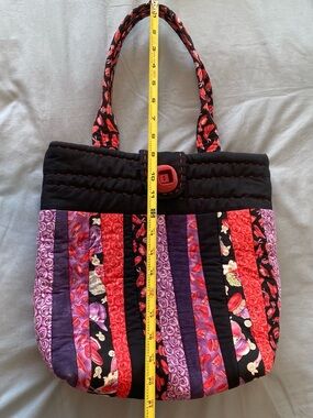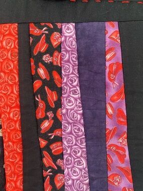 Handmade Quilted Striped Tote Bag in Black, Red & Purple “ Red Hat Society “