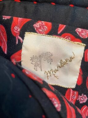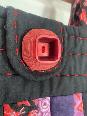 Some of the fabric features a red hat pattern , was possibly made by a lady who was a member of the “ Red Hat Society “