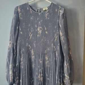 Wilfred Pleaded Daydreamer Chiffon Blue Floral Print Dress S