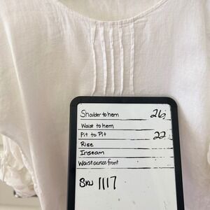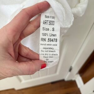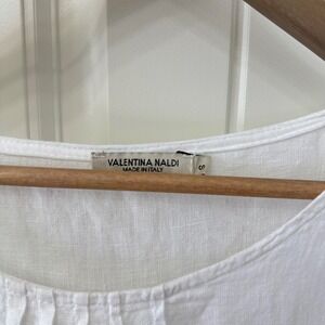 Valentina Naldi Tunic Top S White 100% Linen Made in Italy Pintuck Ruffle Hem