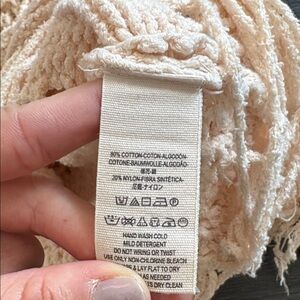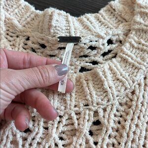 Free People higher love medium Open-Knit Fringe Crochet Sweater in Cream