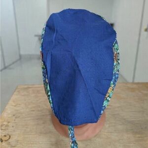 Colorful tie-dye skull cap with Grateful Dead lettering. Bright blue and green swirls with yellow accents. Lightweight and breathable. Ideal for fans and casual wear. Handmade