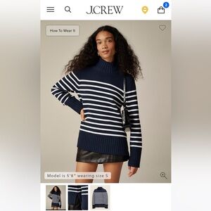J Crew Cotton turtleneck sweater in stripe. NWOT. Size Small