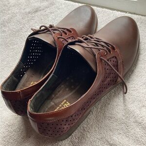 Naot Buran NWOT size 39 burgundy suede / toffee brown leather Oxford shoes