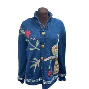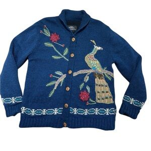 Lost Horizons Wool Peacock Handcrafted Sweater Jacket Womens L Fleece Lined Boho