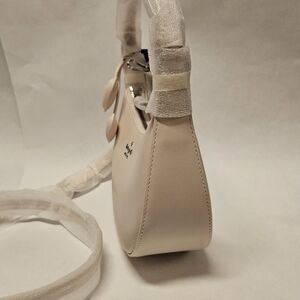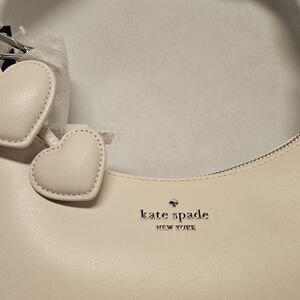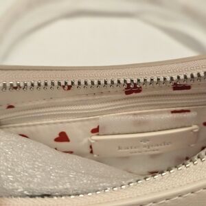 This gorgeous little leather bag is a limited edition Style complete with two little heart charms woven right in. It has a braided strap and a Kate Spade logo printed interior. It's a shoulder bag, but it has an optional strap that can be used as a crossbody or as a traditional purse. It's approximately 9 in, by 6.4 in, by 3 in