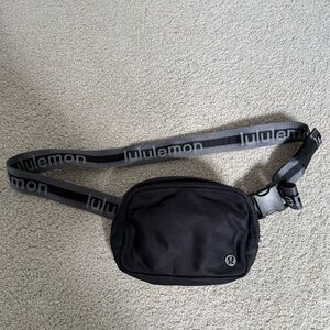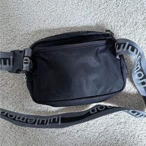 lululemon athletica Black Belt Bag with Gray Logo Strap