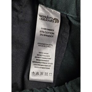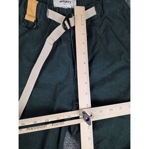 The Wondery Isabel Outdoor Pants in size Small are versatile green cargo joggers designed for outdoor activities such as hiking. Made with stretch material, these pants provide comfort and flexibility during movement. The zip and button closure ensures a secure fit, while the gorpcore style adds a rugged touch to your outfit. Perfect for women looking for both style and functionality in their outdoor apparel.