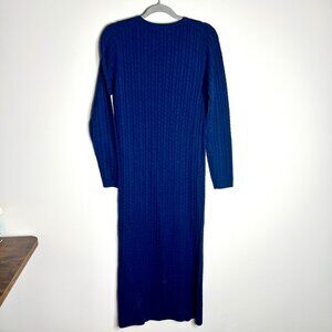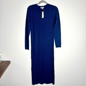 J. Crew Navy Cable-Knit Sweater-Dress 100% Merino Wool Midi Length Sz S NWT
