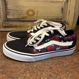 Vans Black and Pink Floral Sneakers
