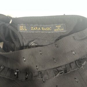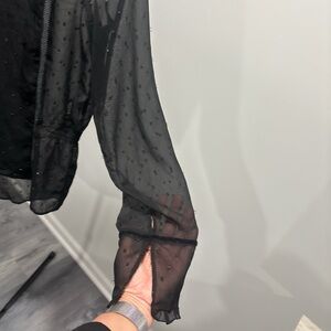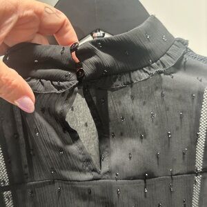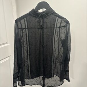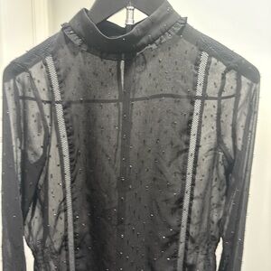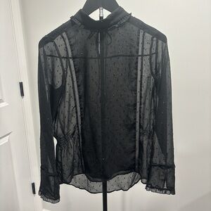 Zara Sheer Black Dotted Ruffle-Neck Blouse