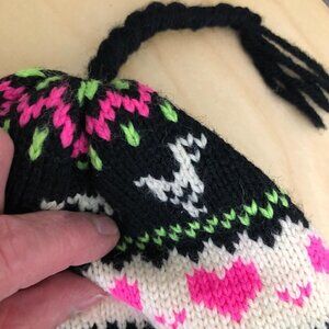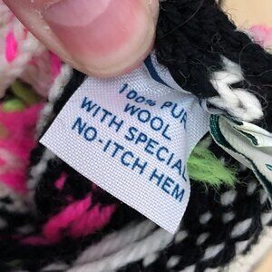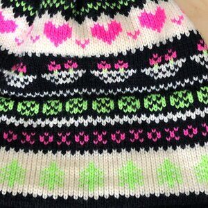 Stowe Woolens Vermont Wool Beanie Women's One Size Fair Isle Black Pink White