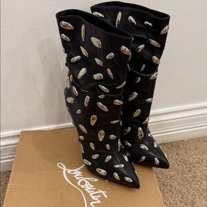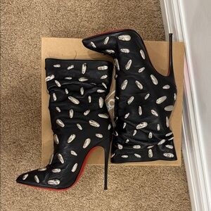 Christian Louboutin Nail Stud Boots 37 Rare Limited Edition Black Leather 💋