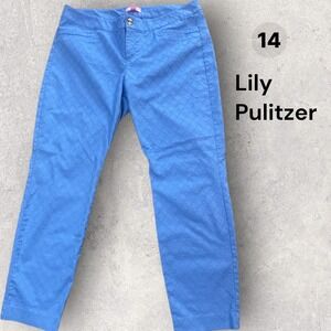 Lilly Pulitzer Blue Jacquard Quatrefoil Ankle Pants Size 14 Slim Stretch NWOT