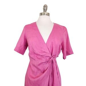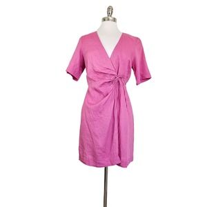 & Other Stories Stockholm Atelier Pink 100% Linen Wrap Mini Dress EUR 36 US 4 S