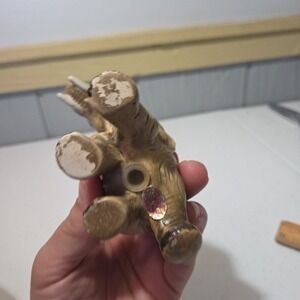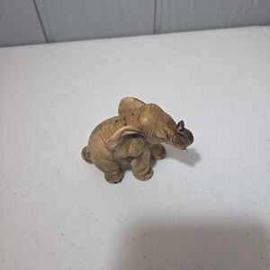 Vintage Porcelain Grey Tan Trunk Up Elephant Salt Shaker Japan Good Luck