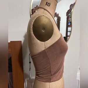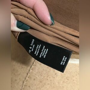 This gorgeous, versatile top matches with absolutely everything. It’s soft and stretchy. Quality, like rag and bone is known for. To me, it has a bit of compression. I am a 34DDD and I needed size large. It doesn’t run small, it just has a slight compression across the bust because of the ruching. And even with the large, I can wear it with just pasties. This top is indeed a staple. I also have this top for sale in navy blue. It is a cropped style top.