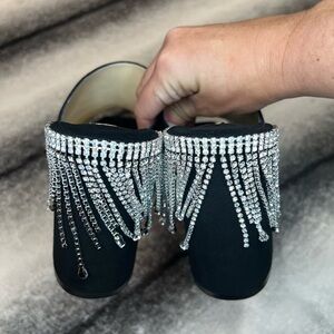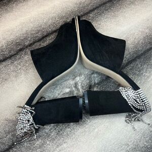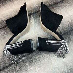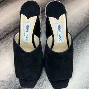 Jimmy Choo Baia 100 mm Black Suede Crystal Drape Mule Heels