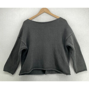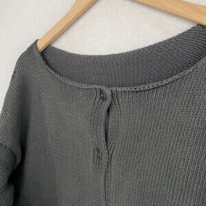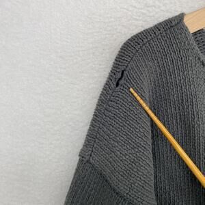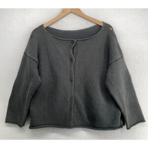 EILEEN FISHER Cardigan L Heavy Cotton Chunky Button Up Drop Shoulder Gray