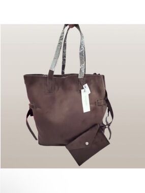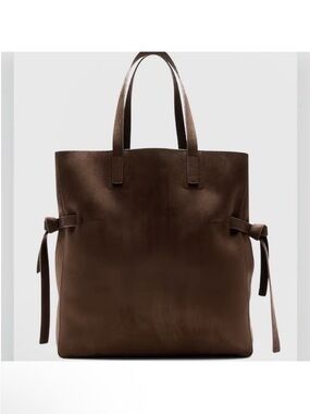🆕 - Banana Republic Chocolate Brown Vegan Suede Side Tie Tote. NWT