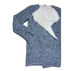 Super soft and cozy UGG open front cardigan in heather gray. Features plush sherpa lining for warmth and comfort, with front pockets and relaxed fit. Perfect for lounging or casual wear.Brand: UGG