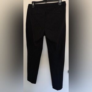 Sleek Liverpool trousers with white pinstripes. Straight-leg silhouette for a polished look. Elasticized waistband for comfort. Easy to style for work or events.
